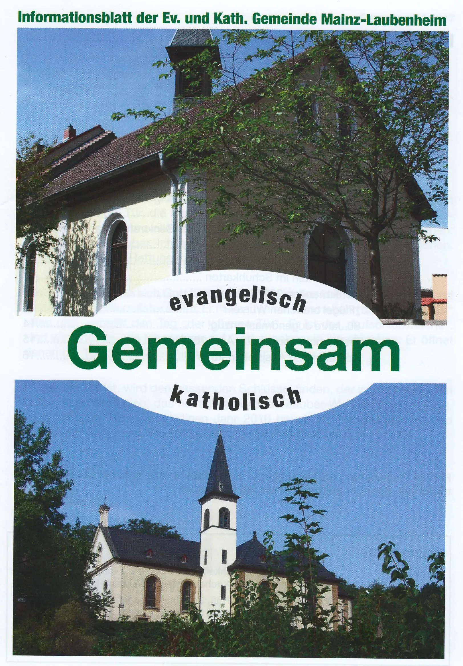 GEMEINSAM ist das ökumenisch geführte Informationsblatt der evangelischen Kirchengemeinde und der katholischen Pfarrei Laubenheims.